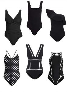 El color negro lo consideramos versátil para cualquier prenda o accesorio, incluyendo los trajes de baño. La tendencia está también en los bodies, que vienen en telas idóneas para utilizarse también en los outfits playeros.